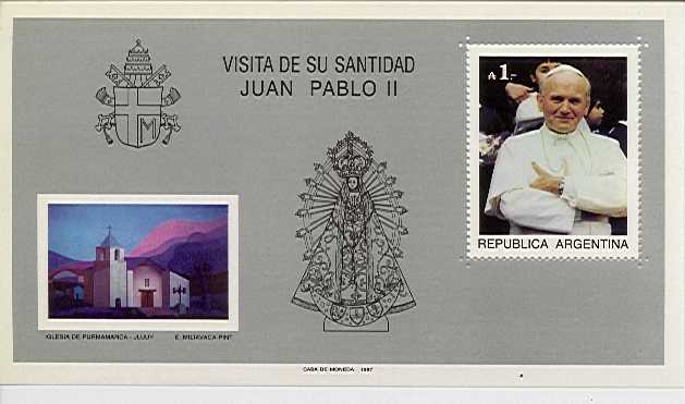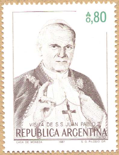 John Paul II visited our country twice. In 1982 during the Falklands War, and in 1987. Both years the Argentine Post Office issued commemorative stamps to its presence in our country. In 1978, the intermediation of John Paul II prevented a war with Chile. Our whole country holds a very high esteem for him and his work.