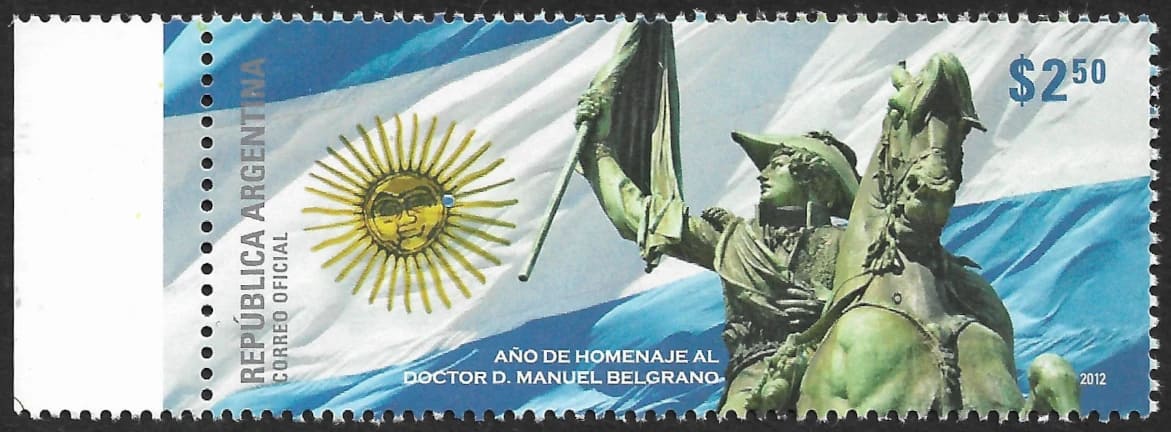 Sello Postal Conmemorativo al Año de Homenaje al Dr Manuel Belgrano Creador del pabellón nacional argentino.