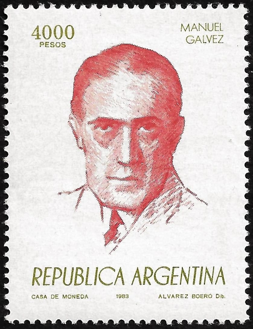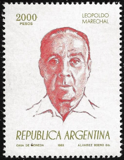 Series of 5 postage stamps with the faces of 5 famous Argentine writers in the vignette: